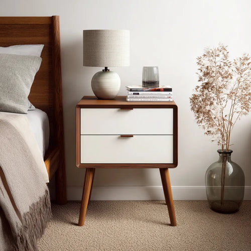 Bedside Table 45x35x60 cm - Wood and White - 2 Drawer - Modern Design