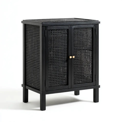 Black Wooden Woven Design Cabinet 70x40x90 cm